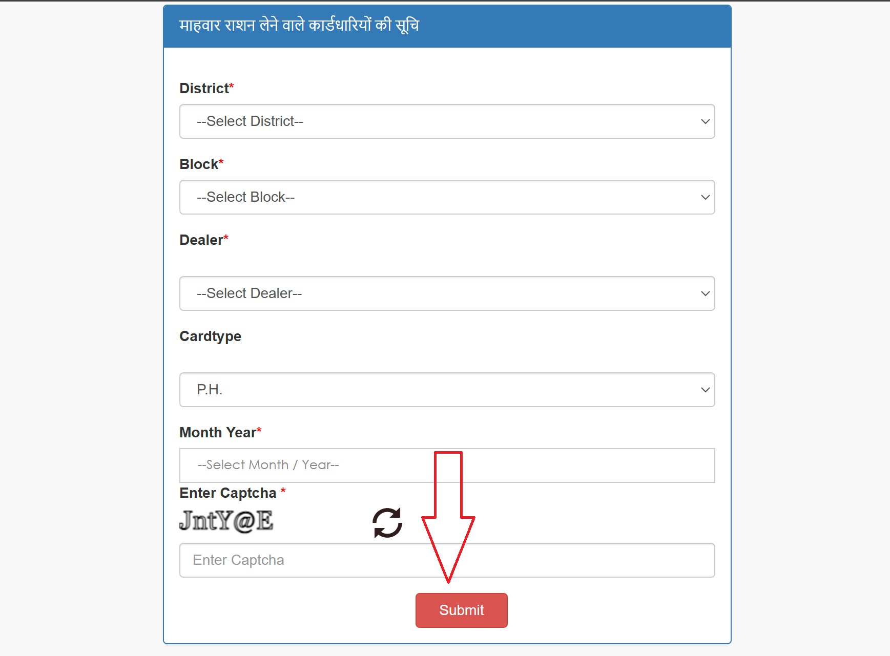 - ब्लॉक (Block) चुनें – जहां आप राशन लेते हैं, वह ब्लॉक चुनें।